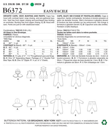 B6372 Infants Cape Vest Buntings And Pull On Pants Butterick Patterns